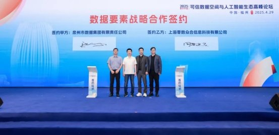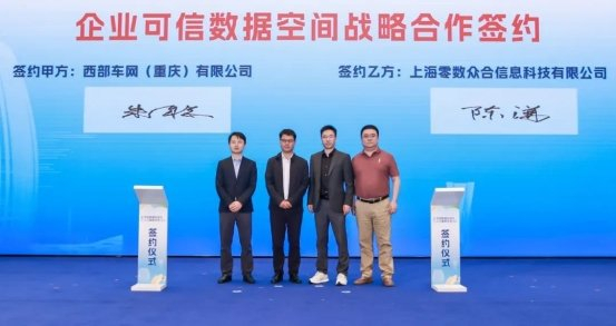 可信数据空间是畅通数据资源循环的重要载体。会上,零数科技分别与上海市静安区数据局、漳州信息产业集团有限公司、泉州数据集团有限公司以及西部车网(重庆)有限公司签署四项战略合作,聚焦推动城市、企业数据空间及产业数据要素流通应用落地。