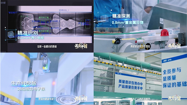 来到生产车间,央视镜头带大家看到了以每分钟800片高速运转的密闭产线。在生产线上,既配置了高速高分辨率的视觉检测仪,能精确识别0.25平方毫米的微小瑕疵;又配置了金属探测仪,让0.8毫米的重金属异物也无处可逃;还有多台智能质检设备,光是感知材料缺失和走偏的全自动动态感知电子眼就有38组,以及不同工位上实时监测的质检人员,确保每一片卫生巾都是在密闭产线内高标准生产的。洁伶不低于83项的品控检测标准,只为生产出让消费者放心使用的卫生巾。