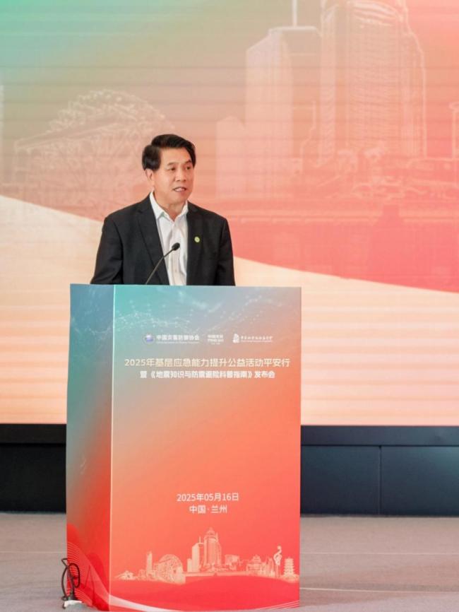 2025年5月16日,由中国灾害防御协会主办,甘肃省地震局、甘肃省应急管理厅、甘肃省委金融办、甘肃省教育厅,甘肃省科学院,临夏州人民政府,中国平安等多家单位联合主办的“2025年基层应急能力提升公益活动平安行暨《地震知识与防震避险科普指南》发布会”在甘肃省兰州市成功举办。作为全国防灾减灾宣传周期间的系列活动之一,此次公益活动汇聚了多方力量,以推动基层应急能力建设为核心,着眼防震减灾科普、灾害救援及灾后恢复经验交流、科技助力风险减量等方面,为全国基层应急能力提升工作注入新动能。活动期间,中国灾害防御协会郑国光会长、甘肃省地震局党组书记、局长石玉成,甘肃省委金融办一级巡视员梁虎堂、甘肃省应急管理厅党委委员、副厅长张晓博、甘肃省科学院副院长王治业、中国平安集团品牌宣传部总经理陈遥等领导分别出席活动并致辞。