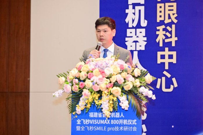 蔡司公司王建中总监对厦门眼科中心成为新一代机器人全飞秒VISUMAX 800设备的首批装机机构表示祝贺。他表示新一代机器人全飞秒VISUMAX 800和新微创SMILE pro手术必将为中国屈光事业的进一步发展注入新动能。