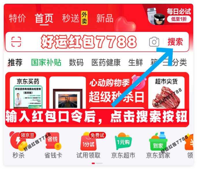 口令红包:京东APP搜索“好运红包7788”,每日领3次,晚8点加码抽25618元大奖。