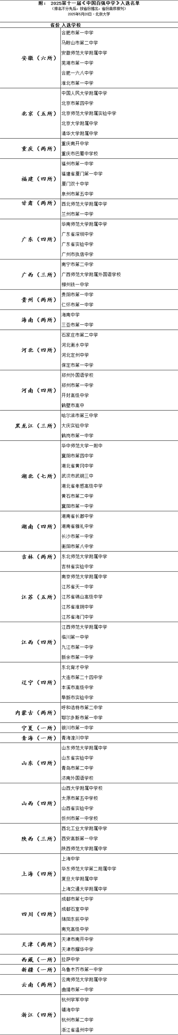 2025第十一届《中国百强中学》日前在北京大学隆重发布,四十余所中国各省市最好中学与会,同期举行“中学名校校长论坛”。从2005年《中国百强中学》首次发布算来,《中国百强中学》评选已走过二十个年头(两年一届)。