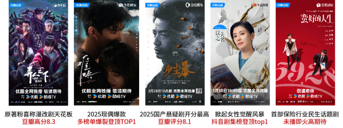 优酷近年来打出“为好内容全力以赴”的口号,在2025年一季度上线了《难哄》、《沙尘暴》、《蛮好的人生》等多款优秀剧集,继续强化构建精品化剧集体系,抢占更多用户注意力和市场空间。