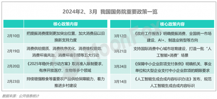 作为开年季度,2025年Q1国务院陆续出台了一系列重要政策,涵盖了稳外资、消费提振、制造业升级、人工智能发展、新型城镇化等多个领域。增强消费信心、促进市场活力为第一季度政策的主基调。
