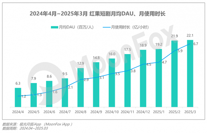 平台侧,短剧市场竞争日趋激烈,头部平台凭借差异性打法脱颖而出。短剧App方面,红果短剧围绕“免费短剧”快速占领市场。据极光月狐数据显示,2025年3月,红果短剧月均DAU达2,212.8万人、月用户使用总时长超6.7亿小时(人均使用时长接近1小时)。