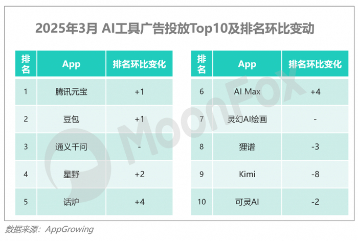 产品层面,如腾讯元宝于2月下旬开始加大投放力度,围绕“满血DeepSeek”等文案投放广告,腾讯广告媒体占比超过70%。以微信为主阵地、搭配原生广告+信息流的方式,腾讯元宝有望迎来用户数量的新一轮增长。