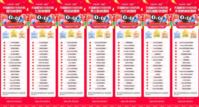 天猫服饰618抢先购爆品王商家榜显示,优衣库、蕉下、crocs拿下前三。细分类目中,ubras、bolon暴龙、coach蔻驰等品牌,也凭借多款超级爆品拿下各类目第一。