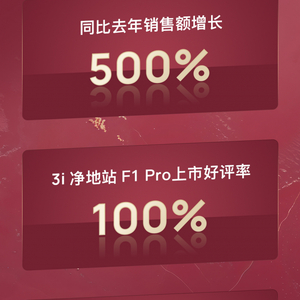 在高端市场高客单价与高要求并存的背景下,3i净地站F1 Pro上市后持续保持100%好评率,成为行业少见的零差评产品。这一成绩背后,体现了3i对用户需求的精准洞察与技术的极致打磨,彰显了其过硬的品质与实用性。