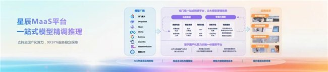 面向企业级需求,星辰Agent专业版的推出进一步彰显讯飞对产业痛点的回应。通过扩容资源池、强化高阶功能,平台为企业提供从用量保障到定制化服务的全链路支持。尤其在模型与Prompt的协同优化上,专业版通过结构化数据反馈与效果追踪,将原本模糊的“经验主义”升级为可量化的科学流程。若说Agent平台解决了“智能体如何高效构建”的问题,星辰MaaS平台则聚焦于“模型如何贴合场景需求”。面对通用大模型在垂直领域的“水土不服”,星辰MaaS平台通过一站式精调工具链,将行业数据转化为专属模型的核心竞争力。从集成星火、DeepSeek等多元模型,到提供国产化算力支撑的99.97%服务稳定性,平台不仅降低微调门槛,更以全生命周期管理确保模型从训练到推理的无缝衔接。这种“即用即销”的自主托管模式,让中小企业也能拥有媲美大厂的模型迭代能力,让再小的场景需求也能拥有专属模型服务。