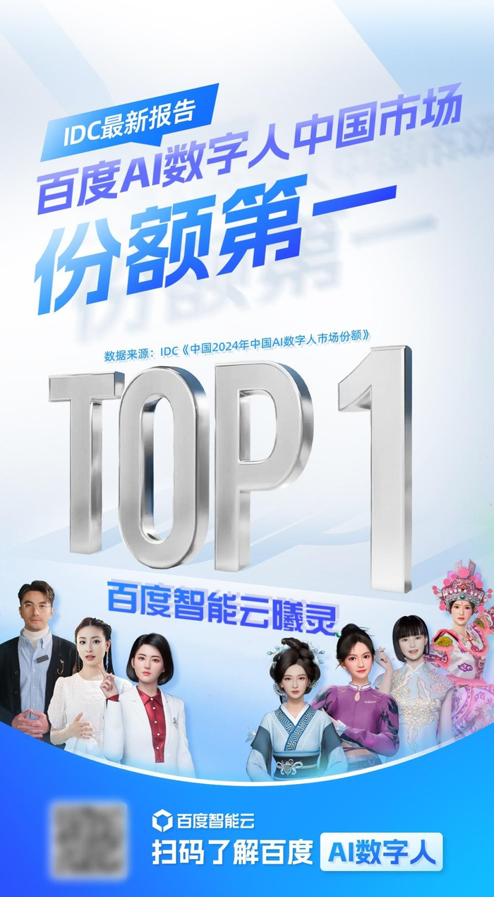 2024AI数字人市场爆发!IDC报告:百度市场份额位居行业第一