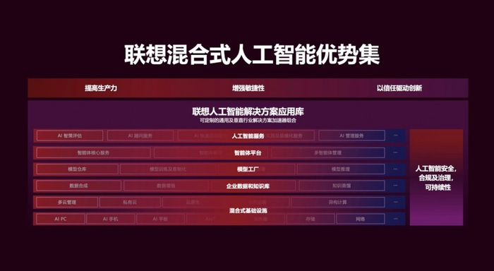 本次升级,正是对这一框架的系统性强化与拓展,释放AI更大潜能。联想集团执行副总裁、方案服务业务集团(SSG)总裁黄建恒表示:“AI不是一个简单的工具,而是一项系统性工程。企业需要既精通技术,又了解行业生态的合作伙伴,共同挖掘AI的业务价值。通过‘联想混合式人工智能优势集’,我们正在帮助客户实现业务价值闭环与生产力跃迁,让各行各业的企业都能以更智能、更高效、更有信心的姿态迈入AI时代。”