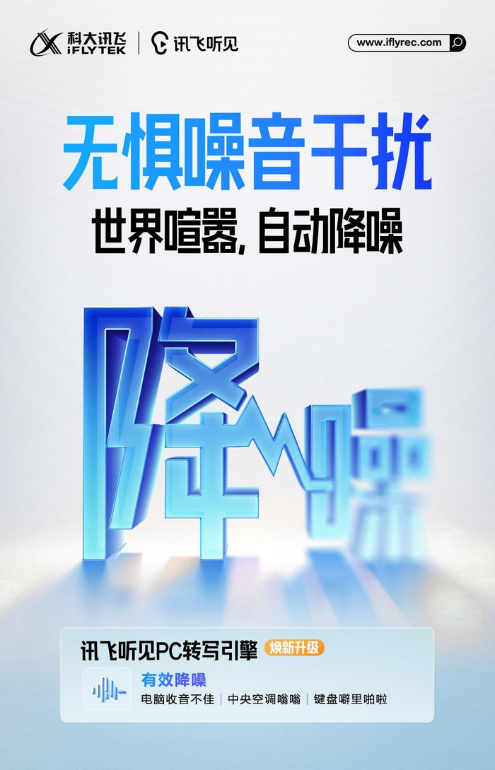 焕新引擎后的讯飞听见PC,支持高噪音降噪,可有效解决办公室录音环境下的噪音干扰,有效提升转写准确率。如:电脑收音麦克风配置不佳、空调噪音、环境白噪音干扰、敲键盘等干扰性噪音。