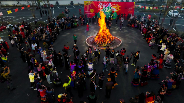 篝火在燃烧,人们在狂欢,夜幕下升腾而起的熊熊火焰,就像彝家儿女的幸福生活一样,红红火火,热烈而灿烂。
