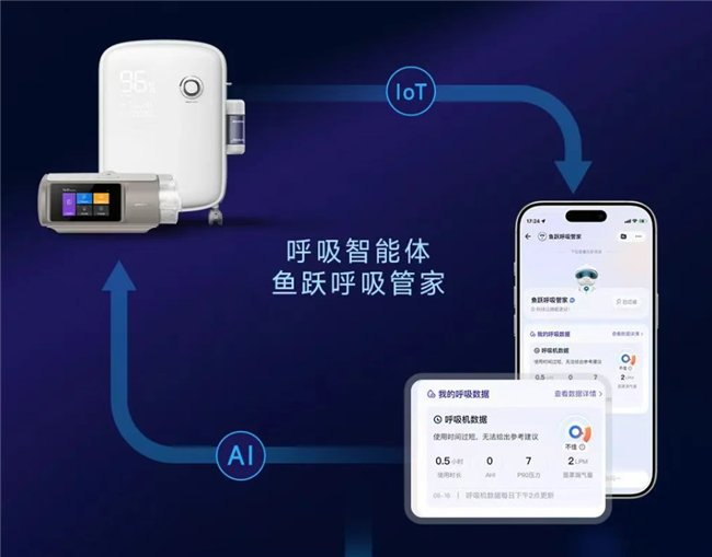 目前,鱼跃医疗旗下产品配套的AI智能体也已上线AQ,包括搭配CGM(持续性葡萄糖监测)产品使用的安耐糖APP、睡眠呼吸机配备的“呼吸管家”等智能健康管理助手。