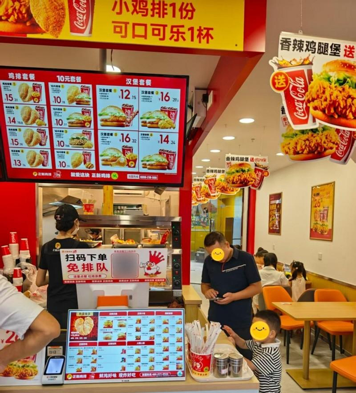正新鸡排“无展示门店”的核心革新,在于彻底打破传统档口“陈列展示+现货售卖”的逻辑,转而推行“全品类现制现售”。在南宁大学城一家试点门店中,没有传统的食材展示柜,顾客通过数字化菜单或小程序点单,店员接到订单后即时制作,3分钟即可取餐,外卖配送时效也比周边门店快5分钟。