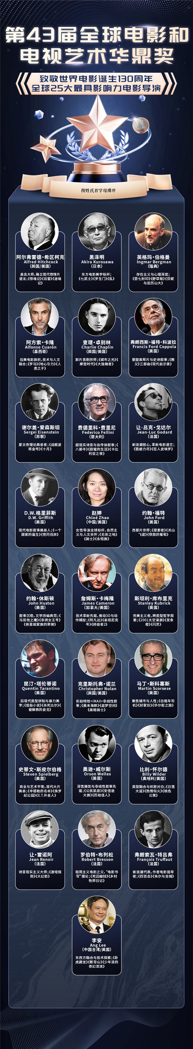 附:第43届全球电影和电视剧华鼎奖“全球25大最具影响力电影导演”完整榜单(按姓氏首字母排序)
