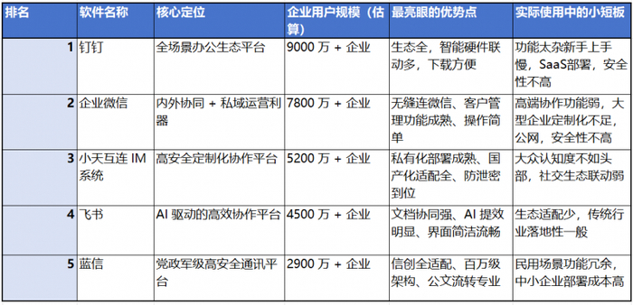 2025年的国内企业IM市场,已经从“拼功能多少”变成了“拼需求匹配”: