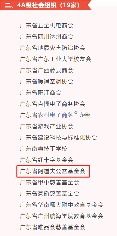 (广东省阿道夫公益基金会获评2024年度全省社会组织4A级)