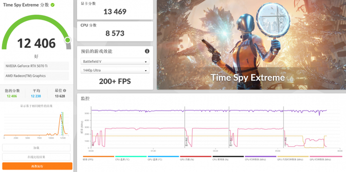 3DMARK Time Spy和Time Spy Extreme两项DX12测试中,这套平台分别拿到24092和12406的总分成绩,并且双双高于相同硬件测试结果,这也能说明内存性能对整机有着积极意义。