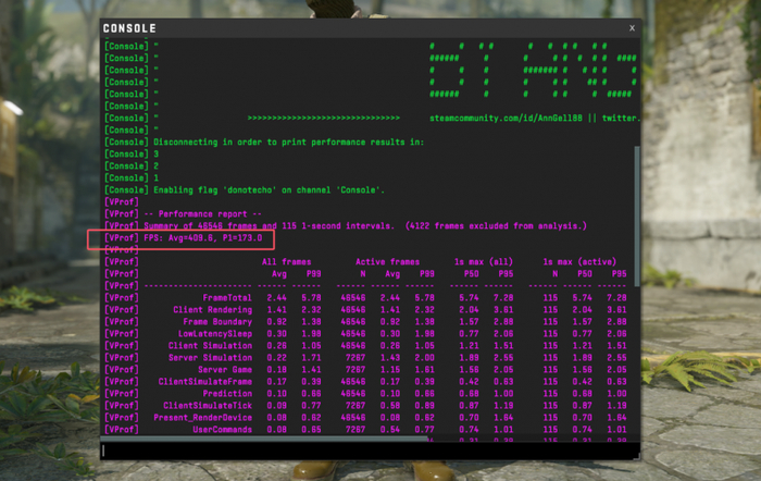 CS2在1080P分辨率、非常高画质下,平均帧突破400fps,Low帧则有173fps。