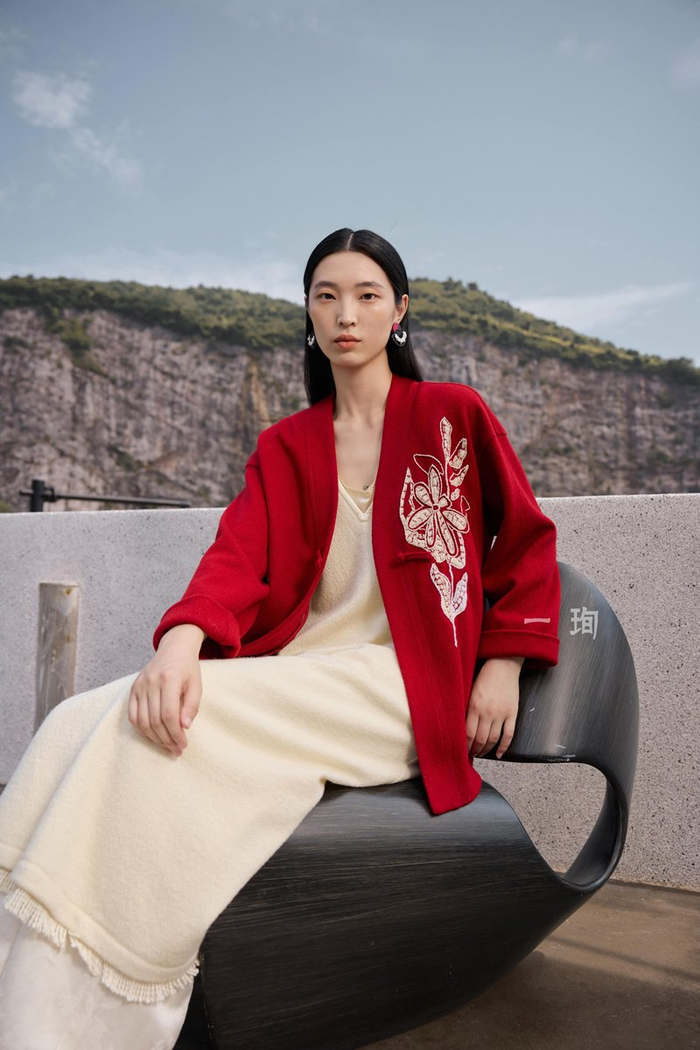 其中,国风新中式延续市场特色,把宋锦、蜀锦、手工刺绣、香云纱等非遗工艺与传统技法结合,融入现代设计。茧絮、观山听雨、顺小德等品牌成为现场人气之选;深圳原创板块汇集其用、主章、一珣、一着章海燕等品牌,提供众多杭州独家货源,以年轻多元的风格吸引了大批时尚客群;羽绒服与羊绒大衣作为秋冬主打品类,皇家花、绒言等批发端实力品牌带来100%山羊绒大衣、高品质羽绒等单品,充分彰显源头市场的品质优势。