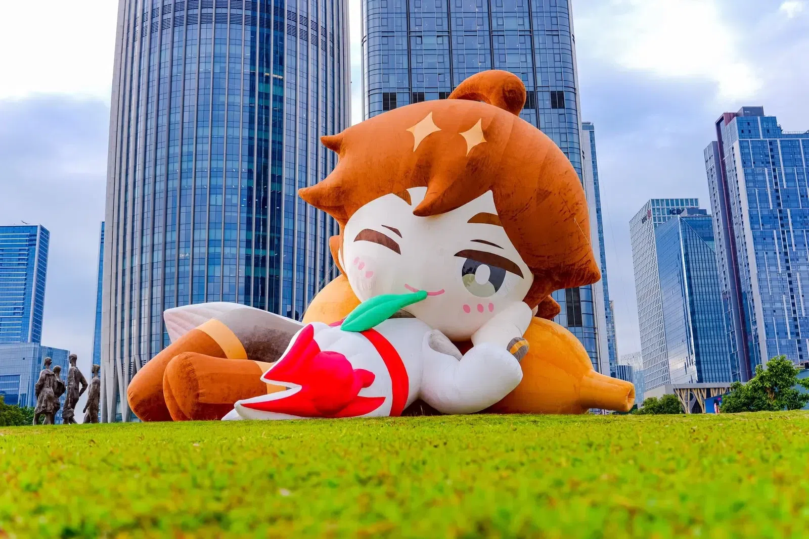 与传统的封闭式展会不同,本次派对将会场置于开放的深圳人才公园,这彻底改变了活动的气质,创造了一种独特的“公园松弛感”:全球最大的“李白”气模斜倚山坡、首个“朵莉亚”水上气模引人注目、大湾区首秀的“无限王者团”四处与游客合影、“无限王者”主题市集开售大量周边......在这里,高浓度的IP氛围被巧妙稀释,与市民的日常休闲生活无缝交融。