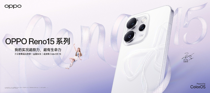 随骑随拍,自由出圈:OPPO Reno15 上新之际,以行业首发的全新影像创作方式“出圈实况拼图”,为骑行路上的自由表达注入灵感。校园内沿途的风景、偶遇的闪光片段,都通过2亿像素超清主摄与高清长焦实况照片轻松捕捉,再以「一拍二拼三出圈」的创作,直出溢出屏幕的生命力实况。外观上,Reno15 采用“运动芭蕾风”设计,结合精致小直屏,轻盈掌握中尽显潮流感。主推色「星光蝴蝶结」运用高亮冰透玻璃与行业首发全息光刻工艺,呈现裸眼3D蝴蝶结光影,随光流转,宛若掌间星光。我们希望通过Reno15 系列,陪伴每位同学在骑行路上不被束缚、勇敢做自己,用镜头即时记录、自由表达,让所有遇见的美好都能轻松记录,精彩出圈。