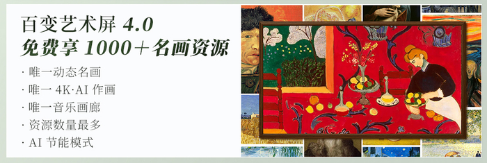 在创维看来,壁纸电视即使在关闭时,也不应该是一块冰冷的黑屏,而是要成为一个有审美、会呼吸、有生命力的“家庭成员”。创维A7H Pro内置了「百变艺术屏4.0」,为用户终身免费提供梵高、莫奈等海量知名艺术家的超1000幅精品名画,足不出户就能欣赏国内外的典藏画作。