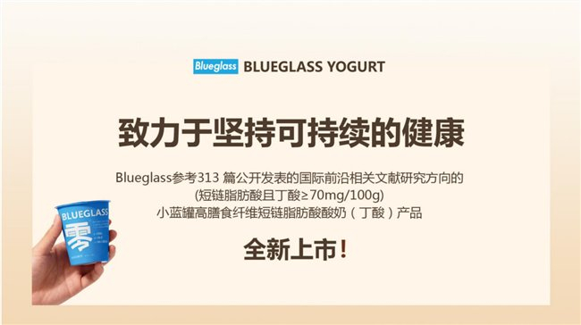 小蓝罐高膳食纤维短链脂肪酸酸奶(丁酸),是 Blueglass 研发团队参考 313 篇国际前沿文献研发而成的新一代功能性食品: