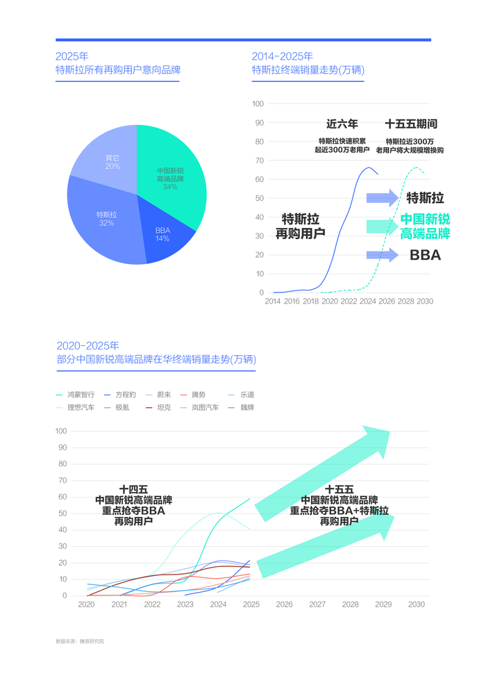 综合看,十五五,特斯拉的战略重点仍是开拓新市场,但期间特斯拉的再购用户一定会爆发式增长,将为其它车企创造夯实高端份额或挺进高端车市之千载难逢的机遇。