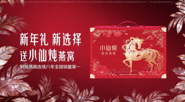 小仙炖的节日限定礼盒很受欢迎,如2025年货节期间,小仙炖夺得全平台健康礼销量领先。2026年马年到来之际,小仙炖推出“龙马安康”礼盒,以代表健康和祥瑞的龙马为意象,寓意美好,大气喜庆礼盒包装设计,春节的氛围感、仪式感满满,里面的燕窝原料均选自全球核心产区,搭配创新精炖工艺,能常温保质180天,非常适合节日送给妈妈,由内而外调理健康,而且非常体面。