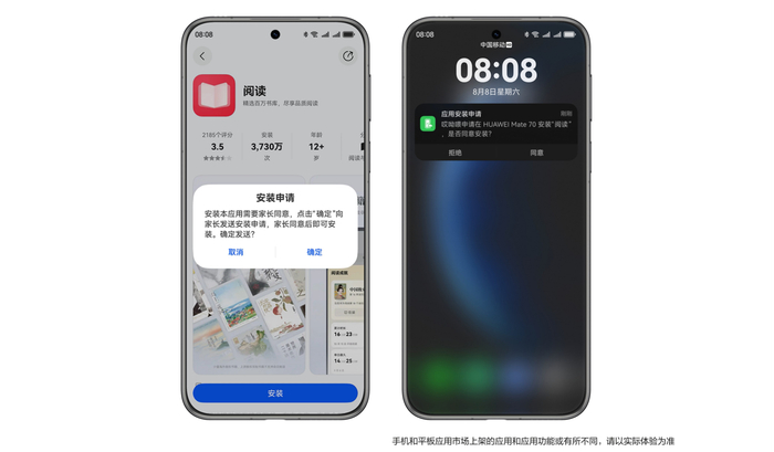 通过该功能,用户可扫码绑定孩子或长辈的设备,即可根据其年龄特点,远程设定适合其年龄的应用范围。当被守护对象在应用市场进行应用安装时,用户会实时收到应用安装申请通知,可一键同意或拒绝,全程无需面对面操作,守护更高效。