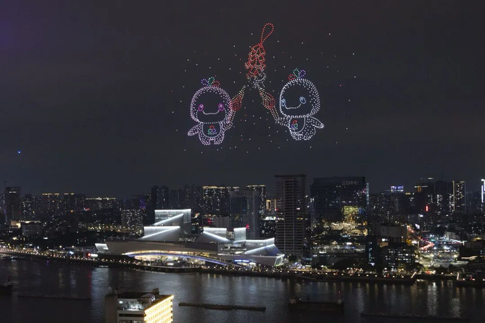 令人惊喜的是,在今年烟花汇演中,“五谷丰登”等多组画面为国内首次呈现,鳌鱼、“大湾鸡”等十五运会出圈元素一一登场。