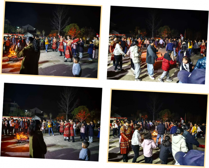 大家不管相识与否,都手拉手围着篝火跳起了欢快的舞蹈,火光映红了每一张笑脸。