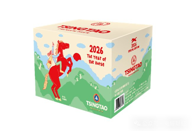 与此同时,青岛啤酒博物馆同步推出2026马年生肖文创版产品“花骢献瑞”,以“骏马踏花来,新春启祥瑞”为主题,在设计上将骏马鬃毛与青岛海浪、啤酒花、如意纹等元素巧妙融合,不仅延续了品牌的地域文化基因,也让消费者在畅饮中获得更深的情感共鸣与文化认同。