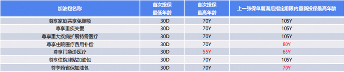 (2)被保人年龄:首次投保时年龄为出生满 30 天至 70 周岁,在上一张保单期满后指定期限内重新投保年龄最高可至 105 周岁。