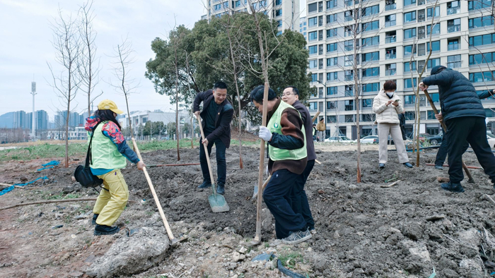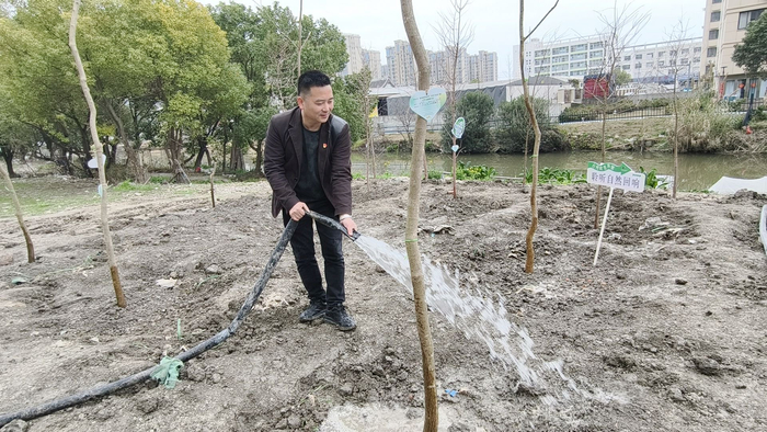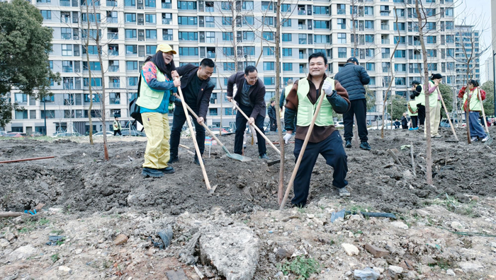 活动现场,参与人员热情饱满、分工协作,从挥锹铲土、扶苗定植,到培土压实、浇水养护,每一个环节都有条不紊、细致认真。大家以双手栽种绿色希望,让一株株新苗扎根沃土,为台州城市画卷增添盎然生机。台州市环保志愿者协会程龙会长、陈初副会长亲临现场,与各界参与者一同挥锹植树,以实际行动引领生态守护风尚。