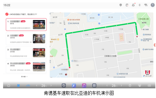 据了解,比亚迪将率先在旗下个性化品牌方程豹钛7车型上搭载肯德基车速取智能点餐功能,并逐步覆盖比亚迪更多主力车型。用户驾车时只需通过语音指令,选定肯德基车速取具体门店,即可完成选餐、支付与预约取餐。