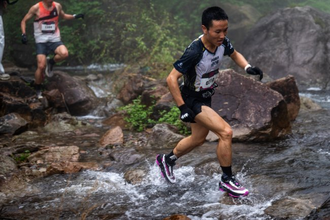 赛事前夕,安吉山区连续降雨,为这条硬核大坡赛道增添了独特的“自然变量”。上坡路段因雨水浸润变得泥泞湿滑,选手需调整步频与落脚点位,在保持爬坡节奏的同时应对额外阻力;而下坡技术路段中一段原本石头露面的浅溪,因水位上涨被悄然淹没,水深及小腿,选手需在水流中判断落点、控制重心,边"溯溪"边完成高速下坡,趣味与挑战并存。“上坡踩泥、下坡涉水,这趟大坡赛体验感拉满!”不少选手赛后笑谈。