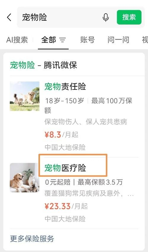 微信搜索“腾讯微保”小程序;或打开“微信-我的-服务-保险服务”,选择“宠物财产”