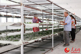 作为茶产业的一环,勉县阜川镇茗茶标准化清洁加工厂通过入股分红、鲜叶收购、代加工等方式,建立长效供求关系,预计带动镇上500户贫困户1650人,人均增收500元。人民网 鄂智超 摄