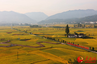 2018年的“油菜花旅游文化节”让勉县阜川镇的唐家湾村出了名,先后接待游客近5万人,让唐家湾村荣膺了勉县“最美乡村”称号。图为唐家湾村水稻田景色。人民网 鄂智超 摄