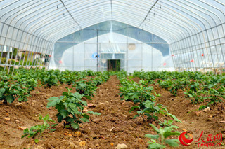 勉县阜川镇骆驼项村生态种植大棚是国铁西安局定点扶贫项目,这里新建了30亩地生态大棚,种植金丝皇菊,为当地贫困户贡献增收。人民网 鄂智超 摄