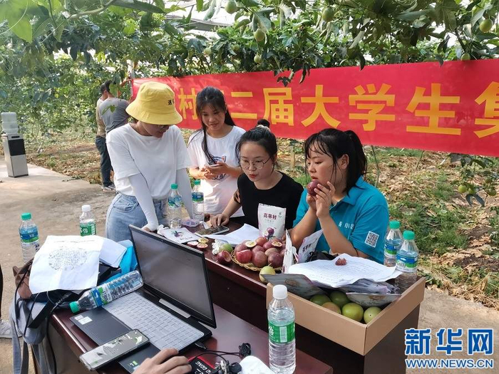 今年8月,一场热热闹闹的“村播”在百香果基地上演,回乡的大学生们一个个当起了主播,推介村里的百香果。 新华网 发