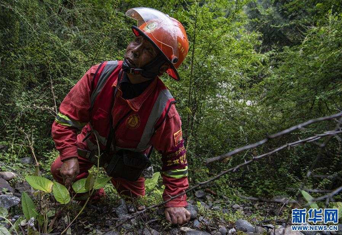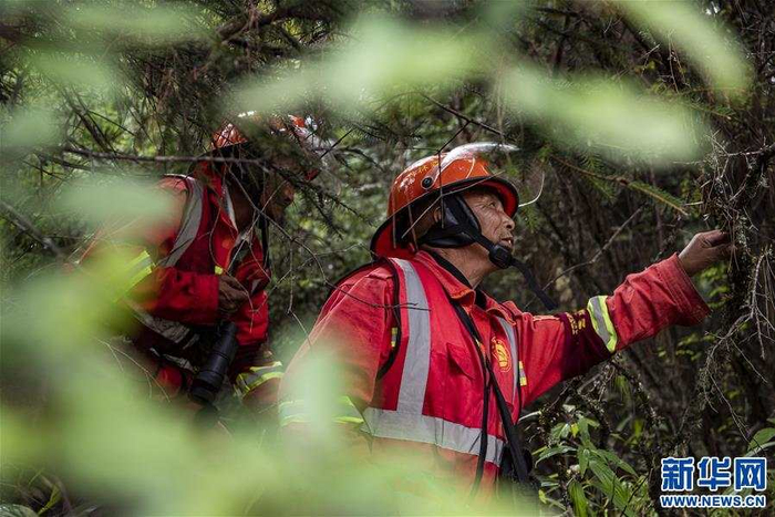 |巡逻途中,护林员白玛次仁停下来查看林木情况(9月14日摄)。新华社记者 孙非 摄