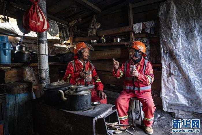 在米林县林业局鲁霞沟管护站,护林员白玛次仁(右)和索朗次仁(左)在休息(9月14日摄)。新华社记者 孙非 摄