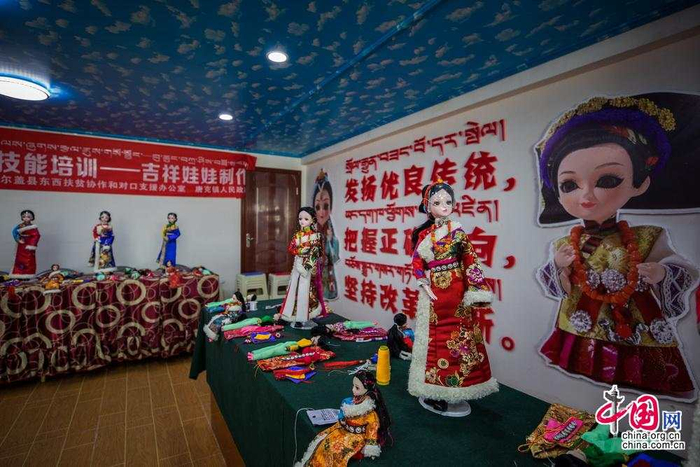 合作社内的“亚一则则”吉祥娃娃及藏式手工艺品展示厅。这些手工娃娃身穿特色服装,从衣服材料到头饰上的装饰品都是严格挑选后由社员一针一线缝制而成的。目前,吉祥娃娃的设计从第一代到现在的第四代已有30余种,第三代吉祥娃娃已经走出国门,远销到日本、荷兰、瑞士、澳大利亚等国,被形象地称为“草原小精灵”。中国网记者 郑亮摄