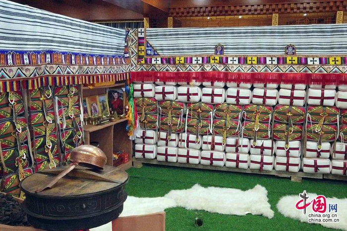 合作社的民俗博物馆秉承着传承藏族民俗文化的宗旨,将一些老式的糌粑桶、水杯、背篓、农作物工具和纺织工具在馆中展示,充分还原了过去的藏式生活场景。同时博物馆中还展示了部分“亚一则则”吉祥娃娃以及阿坝州13个县(市)各族人民的标志服饰。中国网记者 郑亮摄