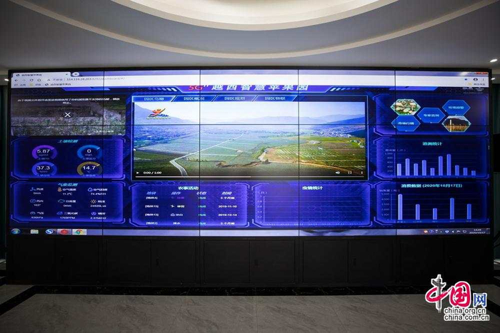 越西现代农业产业园里出产的苹果被当地人称为“5G苹果”,因为园区将最新的5G通信技术引入到苹果园,为提升苹果品质,果园里架设了越西县首个5G基站,借助5G网络,果园里的气象、虫害关键数据、实时监控影像等都可以及时汇集到信息处理中心。中国网记者 郑亮摄