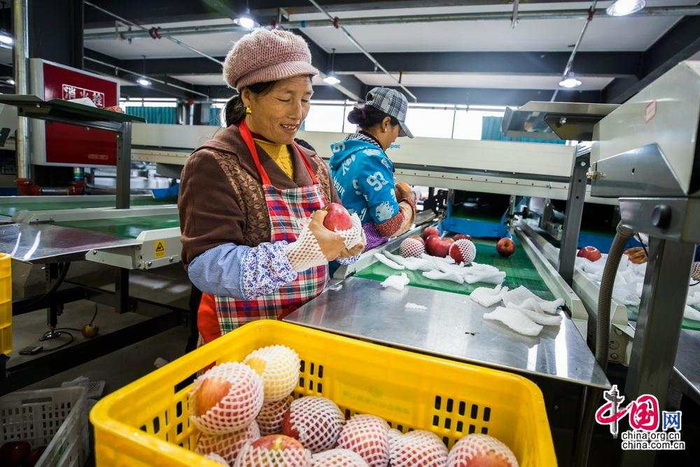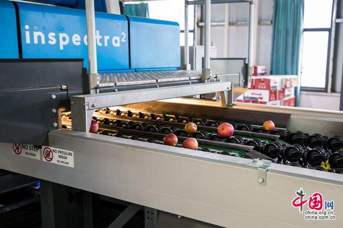 园区内投入使用的全自动化分拣线是目前全球自动化程度领先的水果分拣线,也是凉山第一条全自动分拣线。投用后一天可分拣苹果50吨,让贫困户不用再负担粗重低效的农活,可以释放出多余劳动力,回归到果园负责简单的采摘工作或到未来落成的旅游景区从事服务相关工作。中国网记者 郑亮摄